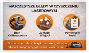 9. Jakie błędy najczęściej popełnia się przy przygotowaniu powierzchni do czyszczenia laserowego?