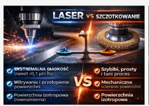 Jeśli zależy Ci na maksymalnej gładkości i kontroli mikrostruktury, laser wygrywa bez dyskusji. Jeśli liczy się koszt i efekt wizualny, szczotkowanie często jest wystarczające.